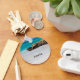 Porte - clé avec une belle photo. Une plage de sable blanc, au surf doux. Une eau tropicale turquoise entoure un rocher déchiqueté.