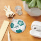 Ce porte - clé de football féminin dispose d'un ballon de football de style traditionnel avec panneaux turquoises et blancs - les panneaux turquoises sont mélangés avec un motif kaléidoscopique girly, artsy et floral - customisez le nom du joueur, le monogramme et le numéro de maillot - par katz_d_zynes