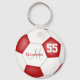 Ce porte - clé de football féminin personnalisé dispose d'une balle de football classique avec des panneaux rouges et blancs - customisez le nom du joueur, le monogramme et le numéro de maillot - par katz_d_zynes
