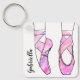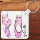 porte - clé carré avec les chaussures de pointe classiques de ballerine dans un imprimé d'aquarelle rose chaud et violet sur les deux côtés. Un cadeau de charme pour danseurs de ballet ou amateurs de ballet, ce design garde l'élégance des chaussures avant et centre. Personnalisez avec un nom pour en faire le vôtre.
