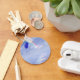 Ballons bleus dérivent dans un ciel arc-en-ciel.