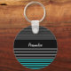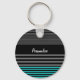 Un preppy signifie porte - clé de mode avec des rayures turquoises et noires fraîches sur le fond et un motif rayé noir et gris tendance sur le reste du design. Personnalisez-vous en ajoutant votre nom à ce porte-clés de style contemporain moderne.