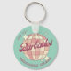 Barbados Caribbean Island Retro Vintage Design avec une boule disco en rose et des teintes de pêche à l'abricot. Ce beau porte - clé est un cadeau parfait, souvenir ou accessoire habitants de l'île des Caraïbes de la Barbade, visiteurs, touristes ou fans.