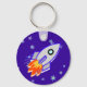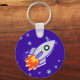 Bright cartoon roquette navire zooming à travers l'espace avec des étoiles dans l'arrière - plan
