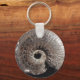 Porte-clés Beau fossile de pyrite ammonite montrant sutures