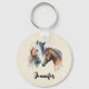 Porte - clé personnalisé avec un magnifique dessin aquarelle. Avec une paire de chevaux, brun et blanc. Tête et cou visibles avec de la peinture goutte le long de la base de leur cou. L'ambiance du sud-ouest.