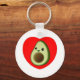 Un avocat de dessin animé dans un coeur rouge. Porte - clés personnalisés. Idée cadeau pour les amateurs d'avocados et de personnages kawaii.