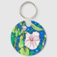 Porte - clé aux motifs floraux colorés, de belles fleurs à l'alcôve enveloppant les tiges de roseaux. OEuvre originale - marqueurs acryliques et croquis de stylo à encre sur papier. palette de couleurs : bleu azur, vert chartreuse, rose, blanc. © ClipsoCallipso / Julia Khoroshikh www.juliakhoroshikh.art #floralprint #accessoires #porte - clés #bindweed #fleurs sauvages #botanical #zazzlemade