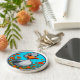 Caricature adorable canard avec un visage rond, grands yeux expressifs, et un sourire joyeux. Le canard a un corps gris clair avec du molleton blanc sur la poitrine, et son bec orange se distingue vibramment. Il se dresse au milieu d'un décor coloré de fleurs fleuries dans les tons orange et jaune, encadré d'un arrière - plan bleu vif. Toute la scène est encadrée d'une bordure circulaire qui renforce l'atmosphère ludique et animée de l'illustration.