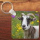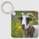 Ce porte - clé présente une belle chèvre dans un pré de fleurs sauvages.