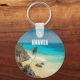 Porte - clé personnalisé avec une belle photo de Tulum, Mexique. Eaux turquoise sur un rivage sablonneux. Le vent balaya les palmiers qui soufflaient dans la brise près d'une falaise escarpée. Apaisant et relaxant.