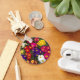 Ce porte - clé à boutons colorés et lumineux présente ma photo d'un lit de fleurs Polyanthus jaunes, blanches, mauves et roses.Cette fermeture à glissière ferait un joli cadeau et un accessoire coloré.