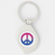 Swirl Metal Keychain with peace symbol design in colors of bisexuality pride flag; pink, purple and blue stripes, on a white background