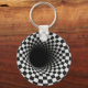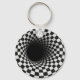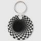 A tunnel-like optical illusion is created using a black and white checkered pattern, giving a dizzying sense of depth