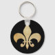 Ce porte - clé présente une fleur de lis d'or antique texturée et en détresse sur un arrière - plan noir.