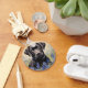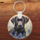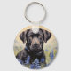 Un Labrador Retriever noir se trouve dans un champ de bleus vibrants, sa fourrure foncée contraste magnifiquement avec les fleurs bleues. Les yeux du chien sont concentrés sur le spectateur, ce qui traduit un sentiment de calme et d'attention. L'arrière - plan est doté d'un ciel doux et brumeux aux teintes chaudes orange et jaune, ce qui suggère un coucher de soleil paisible. Un cadeau idéal pour les amoureux du labrador.