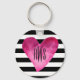 Porte-clés Black + White Stripes Aquarelle Monogramme du coeu