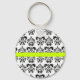 PORTE-CLÉS BLANC NOIR DOMMASQUE FLORALE VERT JAUNE FRIPE