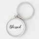 Bienheureux noir et blanc script personnalisé calligraphie mignon porte - clé. Design élégant et moderne. Texte personnalisable