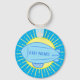 Dessin mignon à dessin animé bleu blimp. Soleil jaune vif dans l'arrière - plan. Porte - clés personnalisés. Modifiez le nom de la bulle pour la customiser. Idée cadeau.