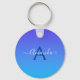 Porte-clés Bleu dégradé élégant Monogramme et nom