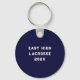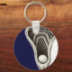 Porte-clés souvenir personnalisé de crosse avec un design de bâton de crosse sur fond bleu marine. Modifiez le texte pour personnaliser pour un joueur, un entraîneur ou un fan de sports d'équipe.