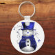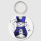 Un bonhomme de neige mignon et lunatique, vêtu d'un chapeau et d'un gilet en velours bleu, entouré d'étoiles bleues pour Noël.