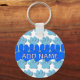 Cartoon dog paw print in blue. Personalized keychains. Edit name to customize.