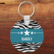 Porte - clé moderne et tendance Sassy Star Zebra avec un arrière - plan design en papier zèbre noir et blanc et une bordure bleue royale audacieuse ornée d'un motif étoilé amusant. Ce design girly peut être customisé avec le texte personnalisé de votre choix. Cliquez sur "Customiser" pour trouver d'autres options de personnalisation.