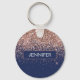 Porte-clés Blush Rose Gold Pailleté Monogramme Bleu Marine
