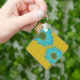 Porte-clés Bold Blue Daisy Art sur Mustard Yellow Arrière - p