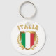 Le drapeau national de l'Italie est infusé dans un faux bouclier doré et mis sur deux faux feuilles de lauriers d'or. Au-dessus de l'image se trouve le nom du pays de nouveau, en faux or.