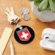 Le drapeau national de la Suisse est infusé dans une forme de bouclier qui a également le nom du pays placé au-dessus du drapeau.