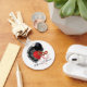Porte - clé ronde en aluminium avec une image cabaret d'un ventilateur en plumes noires, ballons rouges et noirs, masque rouge sur blanc. Texte facultatif. Voir bouton correspondant et collier. Voir l'ensemble de la collection de Porte - clés canadiens dans les TOUCHES SPÉCIALES | Section Favoris.