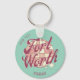 Fort Worth, Texas Retro Vintage Design avec une boule disco en rose et des teintes de pêche à l'abricot. Ce porte - clé magnifique est un cadeau parfait, souvenir ou accessoire résidents de Fort Worth, visiteurs, touristes ou fans.