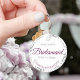 Ces porte - clés sont conçus pour donner comme faveurs aux serveuses d'honneur à votre mariage. Elles présentent un design simple mais élégant avec un arrière - plan blanc, du magenta ou du cassis, un texte violet et gris, et une bordure florale en faux feuille d'argent. Une façon parfaite de remercier vos demoiselles d'honneur d'avoir fait partie de votre journée spéciale !