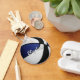 Ce porte - clé cool à thème de basket présente l'image réaliste d'un basketball qui a alterné des panneaux bleus, blancs et noirs recolorés - facilement customiser avec le nom de l'athlète sur le devant et le numéro de maillot et le nom de l'équipe sur le dos - par katz_d_zynes
