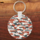 Camouflage toscan rouge et gris foncé sur un porte - clé en aluminium rond, parfait pour les clés liées à des modes de vie actifs — des cabanes d'outils et camions de travail aux cabines éloignés et le stockage des engins.