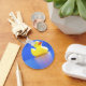 Un mignon coup de canard en caoutchouc sur un lac de bleu.
