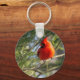 Un cardinal gai prend une pose dans un pin pittoresque, ajoutant une photo amusante à un porte-clés robuste.