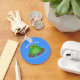 Cette mignonne grenouille verte et joyeuse assise sur un coussin de lys violet est lumineuse et adorable. Beaucoup d'amusement amphibien dessiné dans un joyeux style de dessin animé.