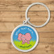 Caricature d'éléphant rose mignon. Deux champs de texte personnalisés sur cercle.