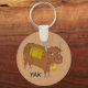 Un yak gai avec une lourde charge. C'est une image de dessin animé d'un Yak brun, laineux, il a un sac attaché à son sac avec une corde jaune. Il sourit heureux.