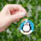 Un joli dessin de manchot noir et blanc. Bébé porte - clés d'animaux. Des flocons de neige dans l'arrière - plan. Idée cadeau pour les enfants.