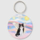 Un ange-chat américain court noir dans un ciel ruban de couleur pastel et des nuages roses fluffy - un parfait Rainbow Bridge / memorial design.