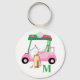 Porte-clés Charming Pink Golf Cart with Clubs and Monogram