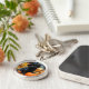 Porte - clé avec un adorable chat noir portant un casquette de sorcière ! Cette petite mignonne pose avec un citrouille. Les feuilles d'automne tapis le sol de la forêt. Un cadeau parfait pour les fêtes d'Halloween !