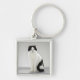 Porte-clés Chat noir et blanc avec les yeux verts rougeoyants