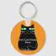 Porte-clés Chat noir gras avec yeux verts Texte personnalisé