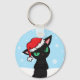Porte-clés Chat noir grumeux portant le chapeau de Père Noël